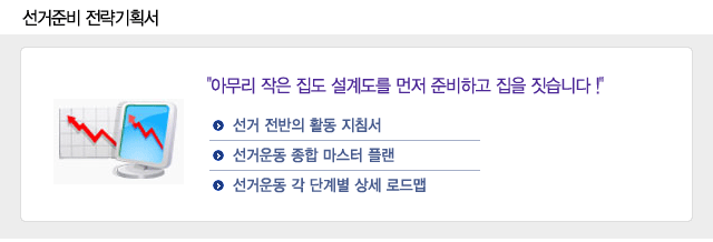 ¼±°Å Áغñ´Ü°è¿¡¼­ºÎÅÍ Àü·«±âȹ¼­¿¡ ÀǰÅÇÏ¿© Ȱµ¿ÇÏ´Â °ÍÀÌ ½ÃÇàÂø¿À³ª
